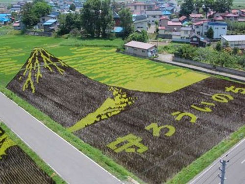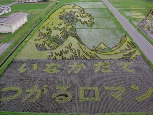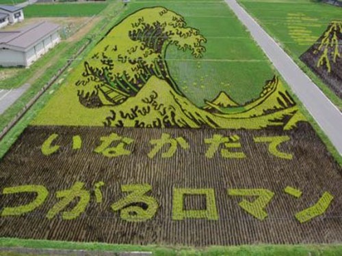 Every year, farmers in the rural town Inakadate, Japan creates rice field art by using red rice in with their regular rice in special patterns. A few others fields in rural Japan also followed the trend of this beautiful rice field art.